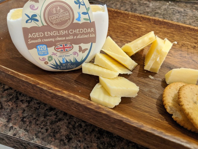 When I think of the U.K. one of the first dishes that comes to my mind is…..FISH AND CHIPS! I’d say that’s probably the number one answer you would get from most people. It’s also easy to make, and kid approved! This dinner was another one of my quick and low maintenance dinners. I like to do a mixture of both so that our Disney dinners are always special but not overwhelming. I scored big on my trip to Aldi with some aged English cheddar. Cheese is one of the best things ever, so I couldn’t pass it up. This is for sure one of those odd ball seasonal items. When I happened upon it, I grabbed it and built dinner around the idea of visiting the UK. *Pro tip: when you find one item from a particular country, look around because there are often others from the same area.* Thankfully Aldi always carries a great selection of beer battered fish and french fries (aka chips,) so the rest of the meal was super easy to put together.