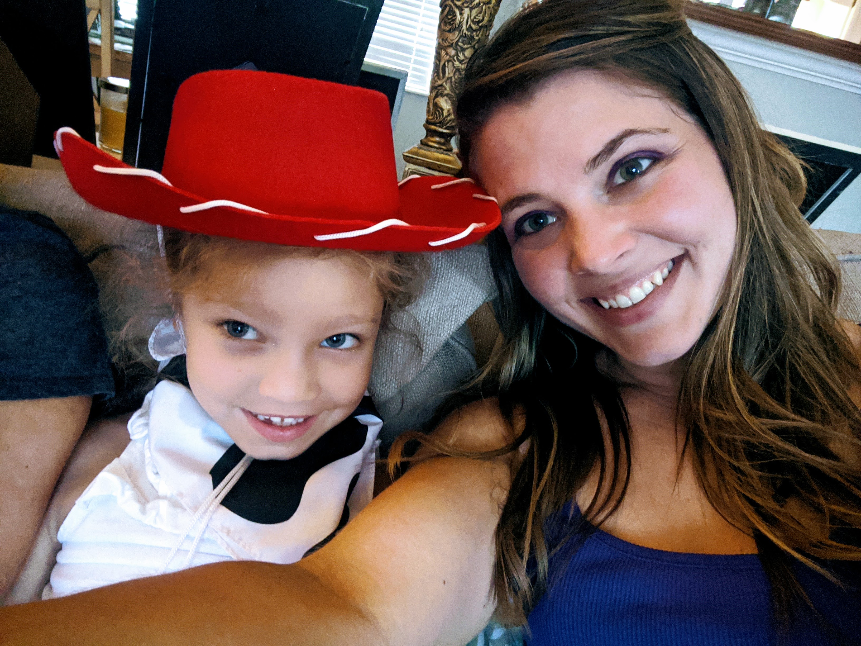A year or two ago, Neyland had a dance show that used a costume loosely based off of “Jessie” from the later movies. We used that as Neyland’s outfit, and I dressed in lime green shorts and a purple tank top with purple eye shadow to be the Mom version of Buzz Lightyear!